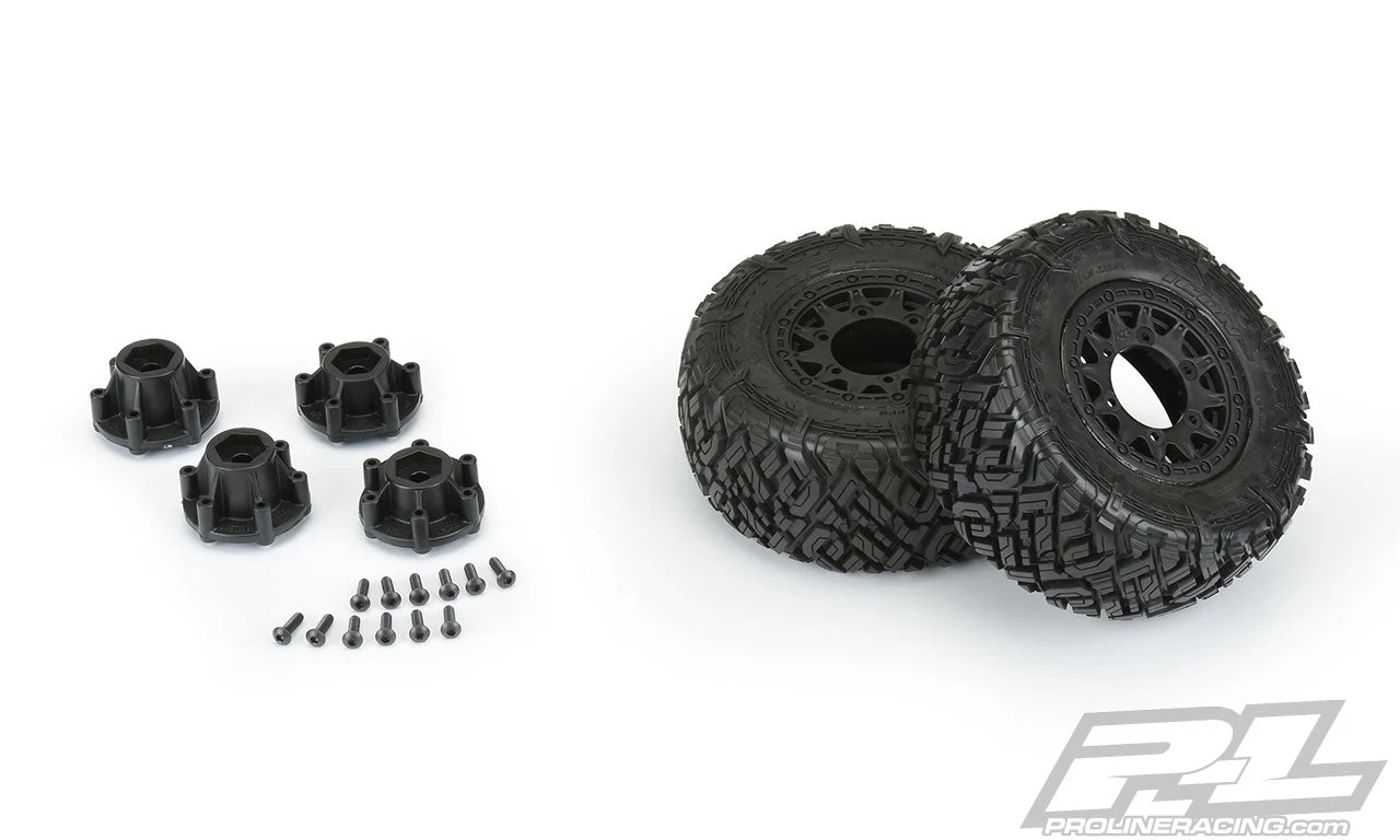 The Icon SC tires are conveniently mounted to a pair of Raid SC Removable Hex Wheels. We take the guesswork out of your glue job by doing the mounting for you so you can spend your time having fun! Pro-Line is proud to introduce a true next-generation Short Course wheel design – the Raid 2.2″/3.0″ Removable Hex Wheel for all Short Course Tires! Imagine being able to easily change the offset of your wheel to fit different applications by simply changing out the hex! Now you can with the new 6×30 Removable Hex system from Pro-Line. The wheels include a pair of 12mm Slash® 4×4 Front/Rear (Slash® 2wd Rear) hexes and a pair of 12mm Slash® 2wd Front hexes that fit the most popular trucks. Optional 14mm, 17mm and ProTrac™ offset 12mm hexes (6355-00) are available separately to fit your exact application. If your wheel hex ever gets damaged, it can easily be replaced without needing to replace your glued tires (6354-00 Replacement Slash® Hexes)! These Raid SC wheels accomplish all of this and more by using Pro-Line’s unique 6×30 interlocking hex design that is secured to the wheel by 6 M3 screws that are spaced 30mm across. The built-in adjustability and ease of use make this a new must-have wheel for Short Course Trucks everywhere! Get your new Icon SC pre-mounted tires today!