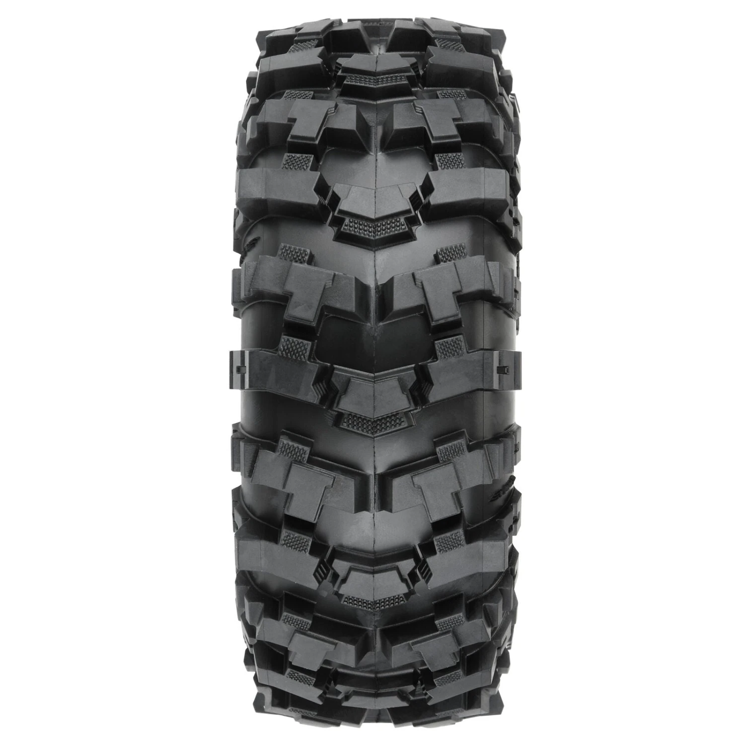 Molded in our legendary G8 compound, all the details of this gnarly tire are captured in perfect 1/10 scale detail: from the Tread Biter™ cleats for added traction, to the Mud Scoops for added cleaning power, to the Massive Sidebiters® and angled shoulder scallops for ultimate side grip. Symmetric directional tread pattern provides excellent traction and cleaning power as well.