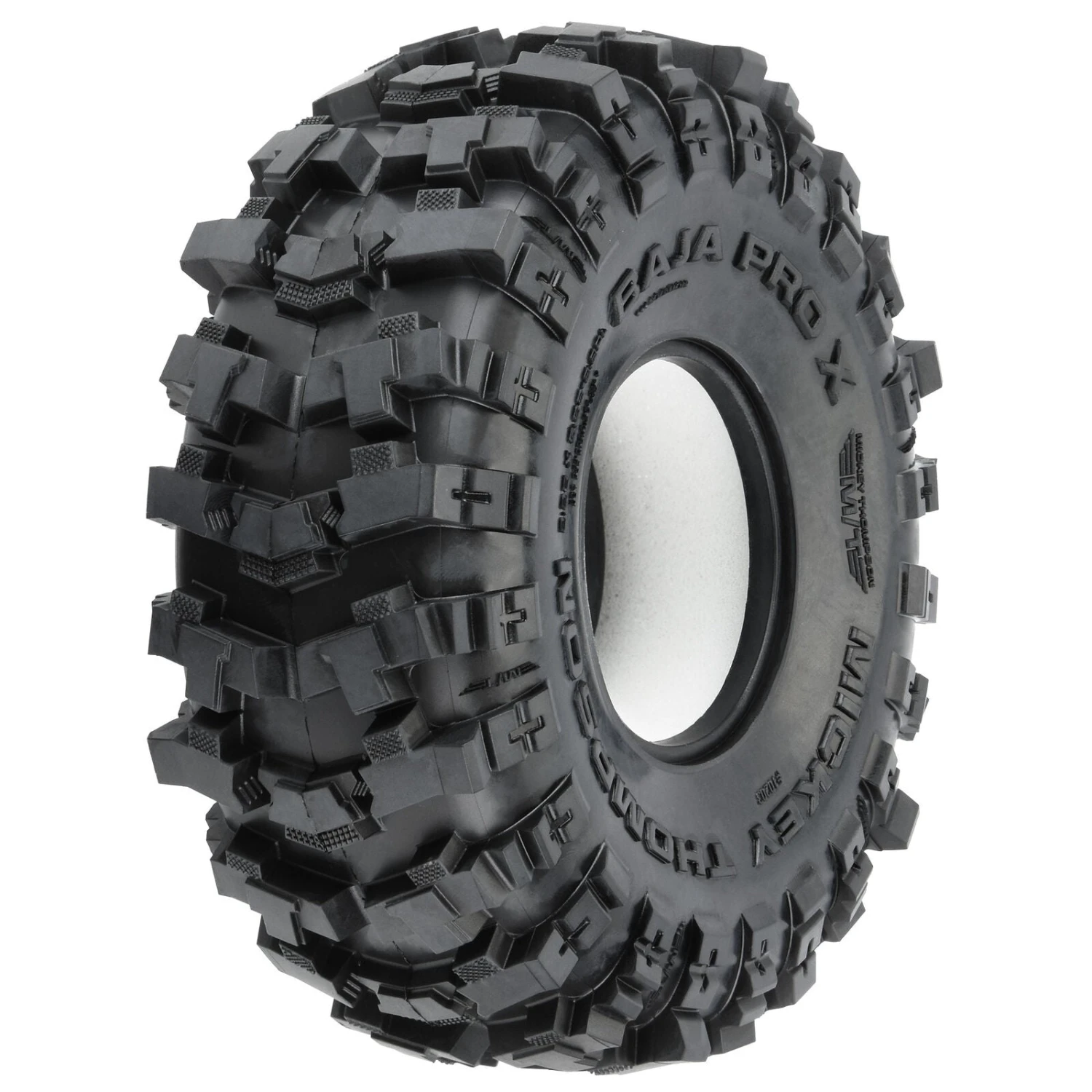 This is a pair Mickey Thompson Baja Pro™ X 2.2″ Crawler Tires. Pro-Line is proud to announce our first licensed tire from Mickey Thompson Tires, the Baja Pro™ X! The Baja Pro™ X is a competition proven extreme terrain tire perfect for your 2.2″ rock bouncer or crawler.