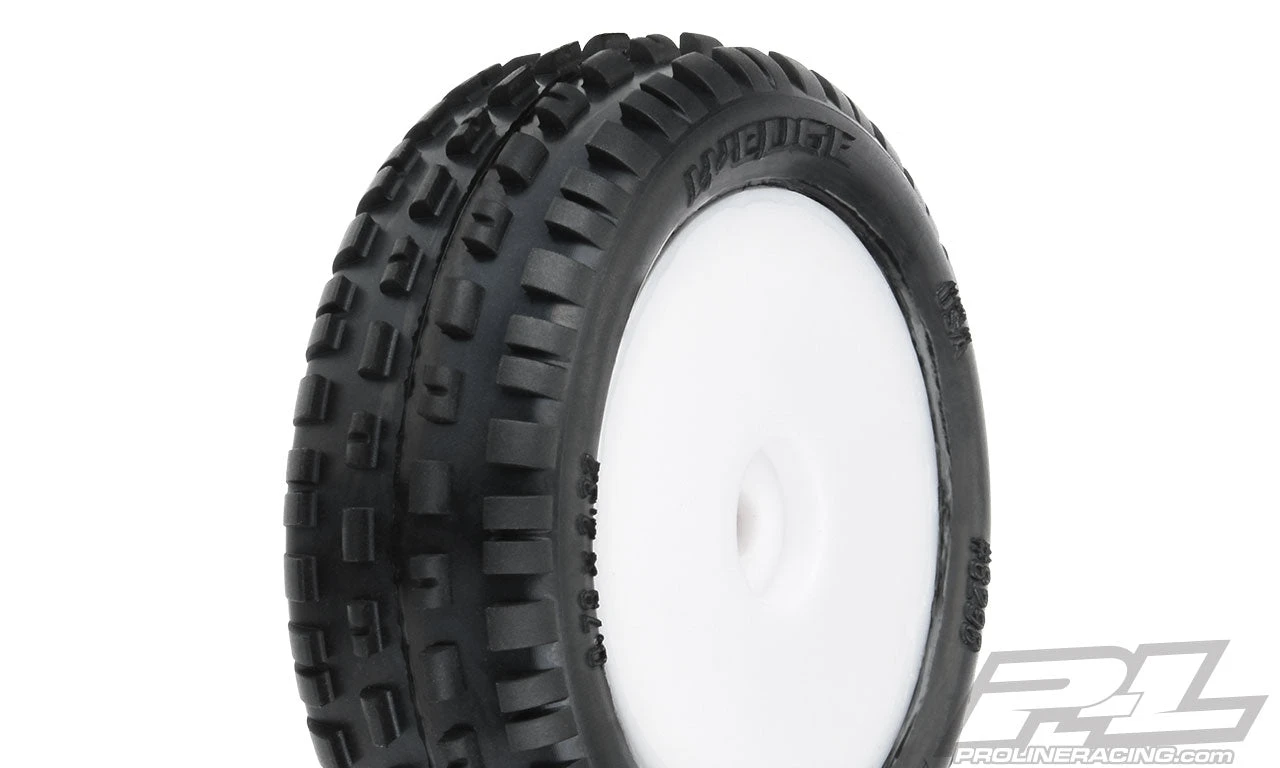 The Mini-B™ is one of the most exciting new mini vehicles releases and Pro-Line is ready to take it to the next level with mini carpet tires. Introducing Mini-B™ Wedge front tires perfect for racing your friends at the local carpet track! You can even set up a track in your living room! The Wedge features the same iconic hook-shaped pins that you know and love from the 1:10 size tires, which provide the steering you need without being too grabby. The Wedge front tires are conveniently pre-mounted to White Mini-B™ front wheels and are made from a special carpet racing compound. Pair the Wedge front tires with the Prism rear tires (8297-13) for maximum carpet performance. Don’t get left out of the Mini-B™ carpet fun. Get your own set of Pro-Line Mini-B™ carpet tires today!