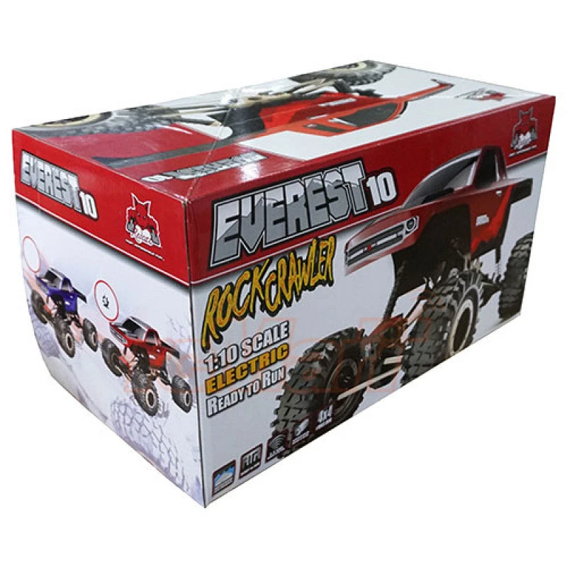 The Redcat Racing Everest-10 1/10 Scale 4WD RTR Electric Rock Crawler, is ready for rock crunching, boulder stomping, stone slamming adventure! The Everest-10 comes complete with front & rear multi-link suspension, front and rear transmission, 2.4Ghz Radio Control, Battery & Charger! Aggressive bead-lock rock crawling tires, four aluminum capped oil filled shocks, complete ball bearings throughout, and a two channel 2.4GHz Radio all make this 4X4 super crawler more than ready to challenge the laws of gravity!