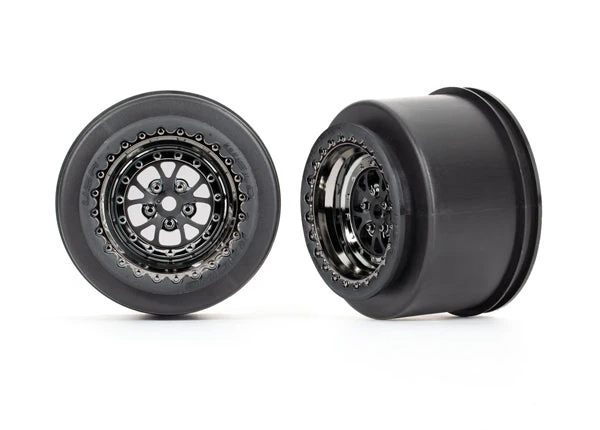 Traxxas 9473X Rear Black Chrome Weld Wheels for Drag Slash